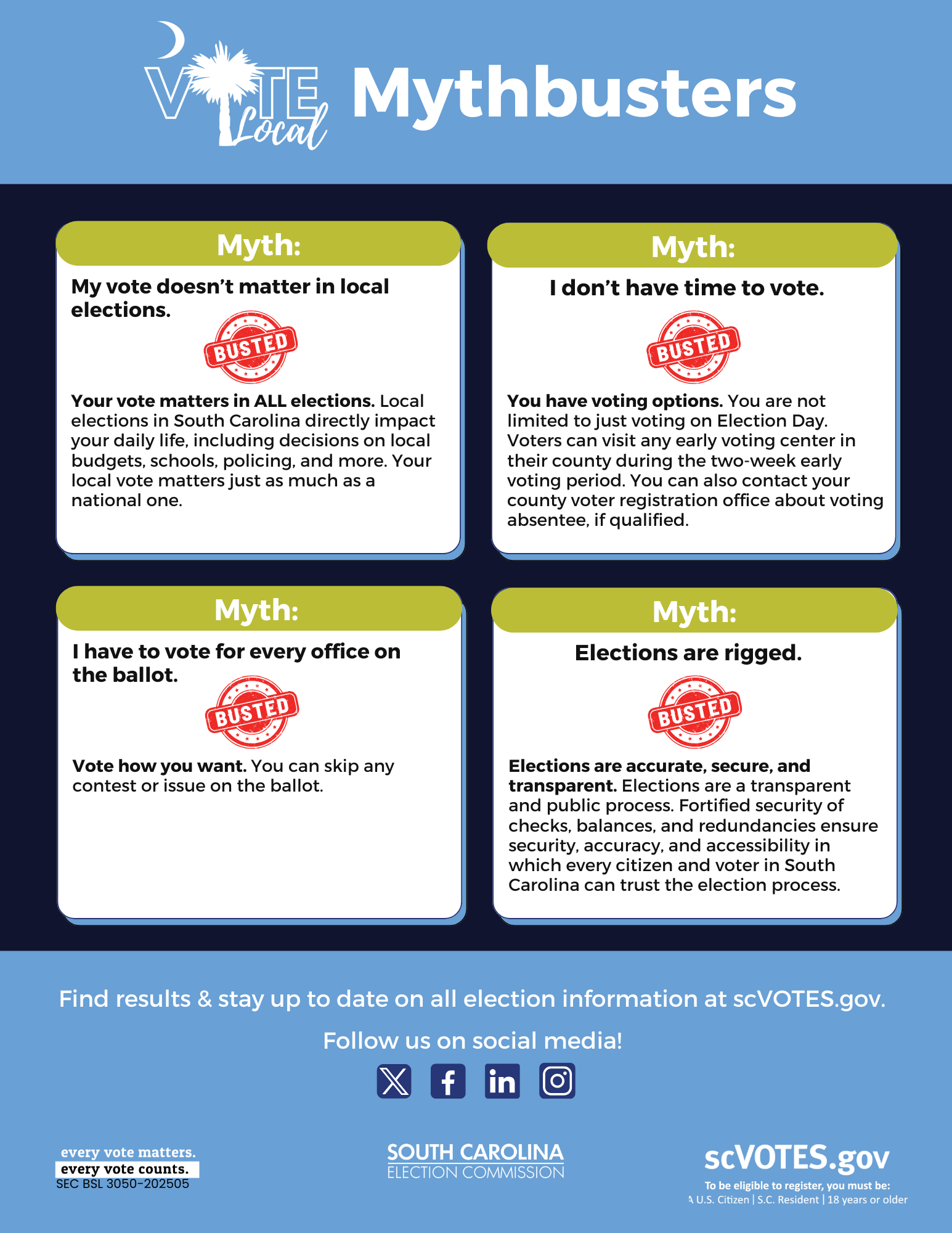 This poster addresses common myths about local elections and explains the facts that debunk them, helping to clarify misunderstandings and promote informed voting.