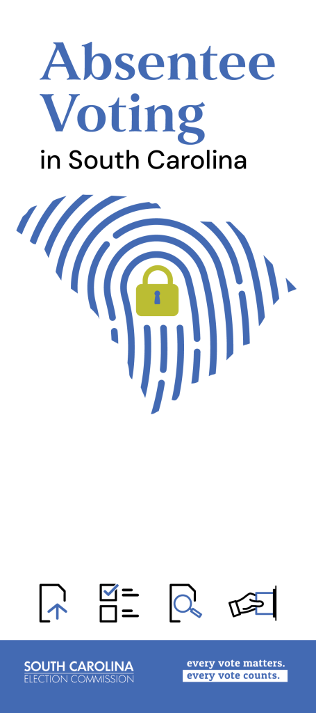 This brochure outlines the process for absentee voting in South Carolina, including eligibility, how to request and return ballots, and special provisions for military and overseas voters.